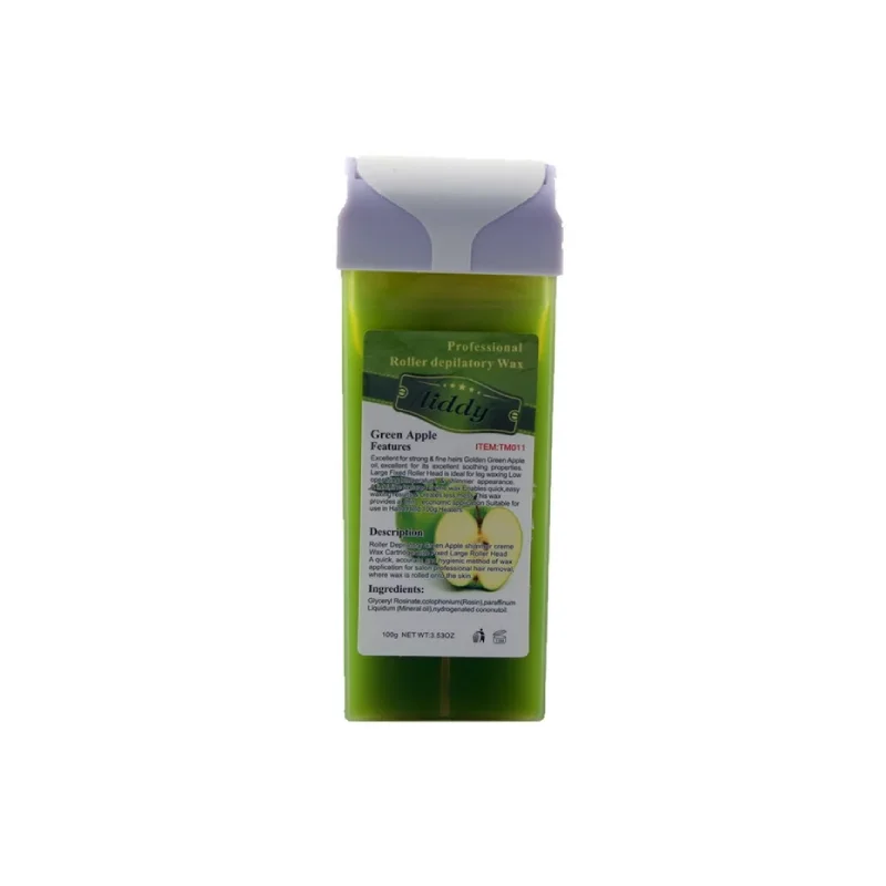 - ضعي الشمع على المنطقة المستهدفة، مع الإمساك بالرول بزاوية 45 درجة على الجلد، واستخدمي ضربات لطيفة وممتدة للتطبيق.